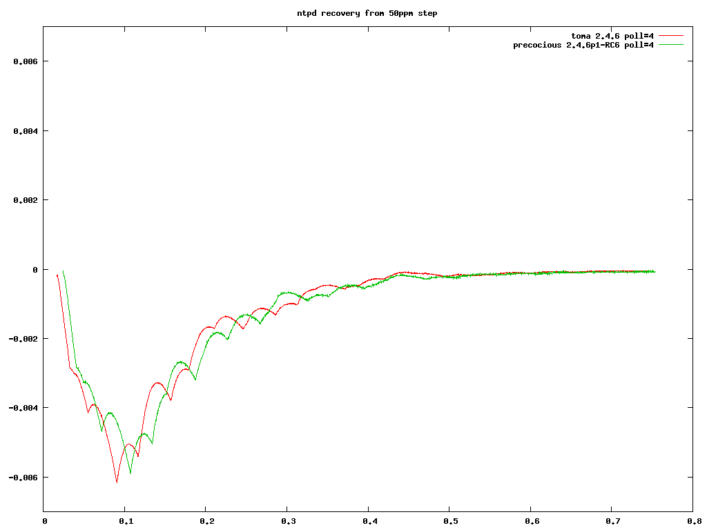 below: ntpd reference implementation with kernel discipline (default), 2.4.6 on Linux 2.6.32-10 and 2.4.6p1-RC6 on 2.6.34-0.19.rc2.git.